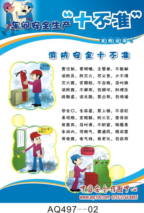 本套挂图以图文并茂的形式,从企业员工角度出发,重点列举了车间生产过程中常见的违章操作行为,归纳为“十不准”。内容简单明了,易于记忆,再配以真实的案例, -