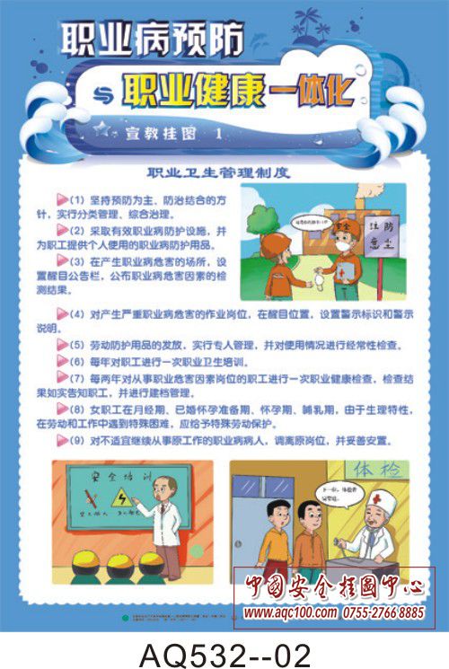 AQ676--职业病危害防治八条规定-8大必须远离职业病危害宣传挂图-6张AQ676-01 几种常见的职业病分类及易患人群AQ676-02 解读《用人单位职业病危害防治八条规定》AQ6 -