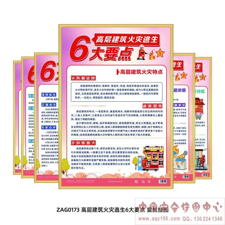 高层建筑火灾逃生6大要点宣教挂图ZAG0173 -