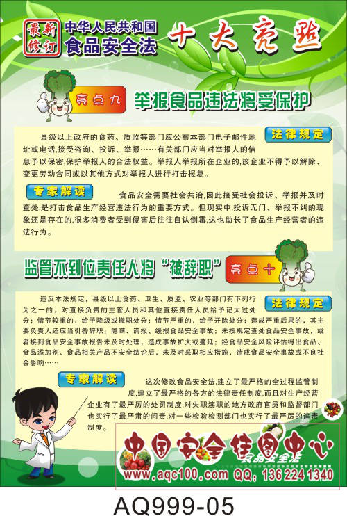 AQ999-05 举报食品违法将受保护 监管不到位责任人将“被辞职”