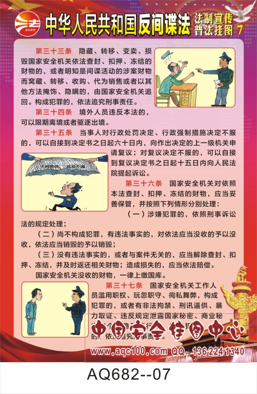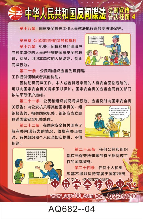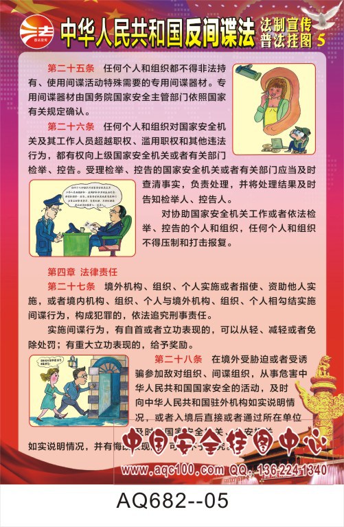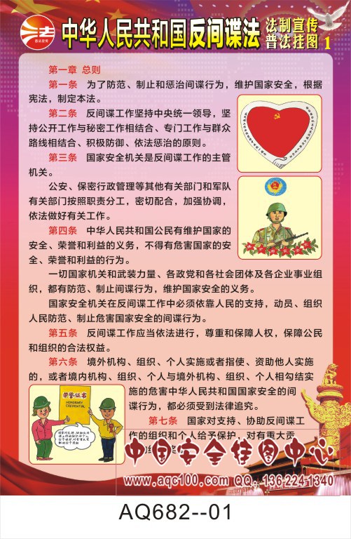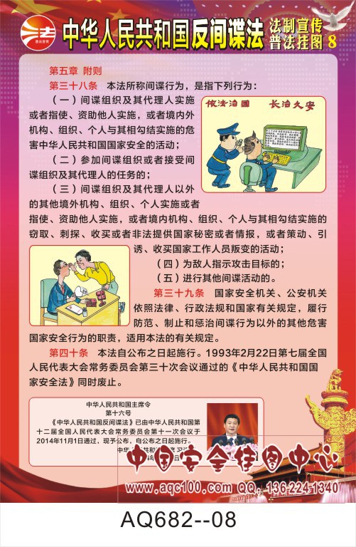 AQ682--中华人民共和国反间谍法法制宣传普法挂图-8张