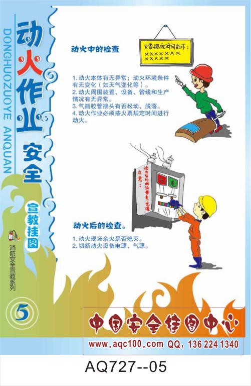 AQ727-05动火作业安全宣传挂图、动火中的检查
