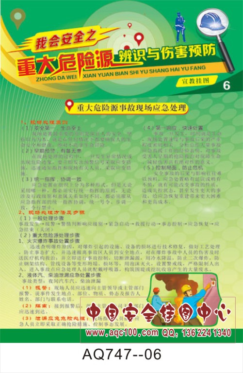 AQ747-06重大危险源辨识与伤害预防宣传挂图 重大危险源事故现场应急处理挂图