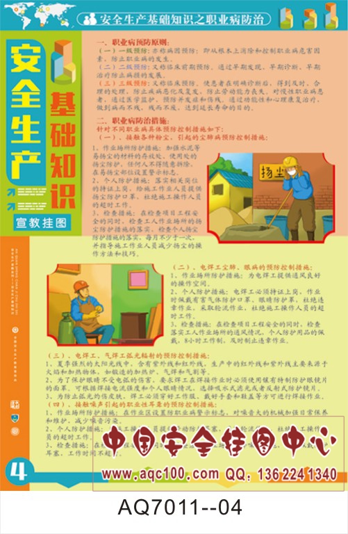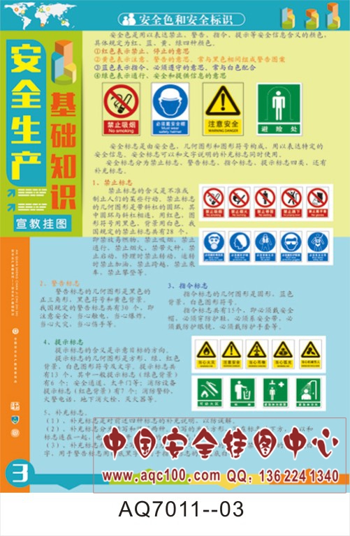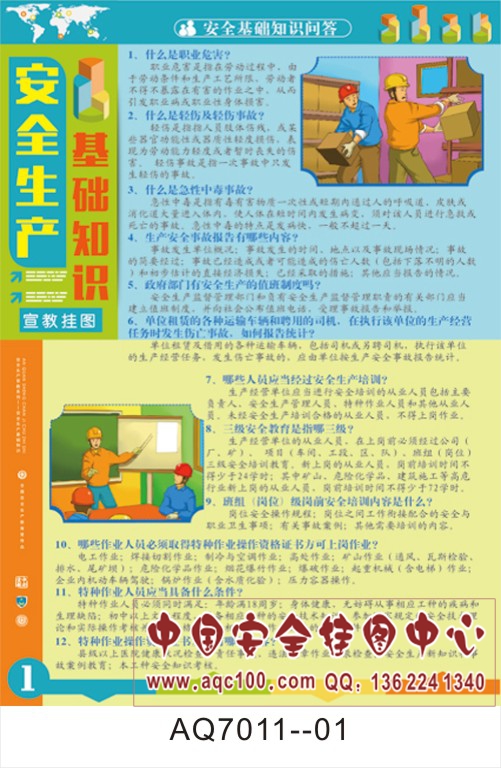 产品简介:AQ7011--安全生产基础知识宣传挂图-6张