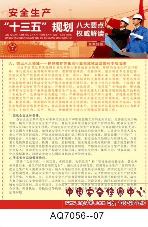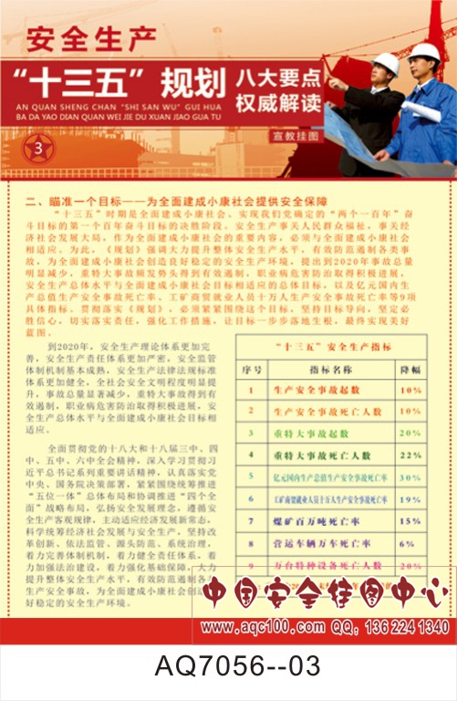 AQ7056--安全生产十三五规划宣传挂图-8张 52*76CM 铜版纸印刷 一套55元
