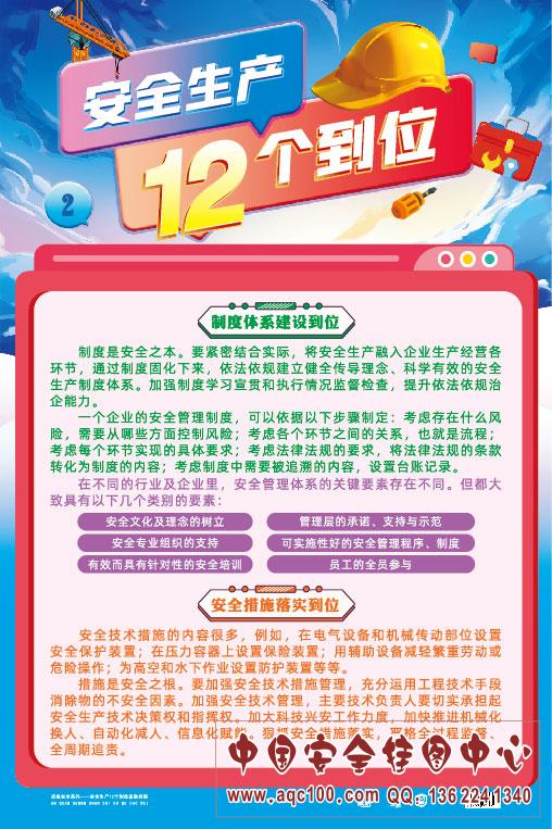 >> 安全生产“十二个到位”宣教挂图(大版)ZAG1191