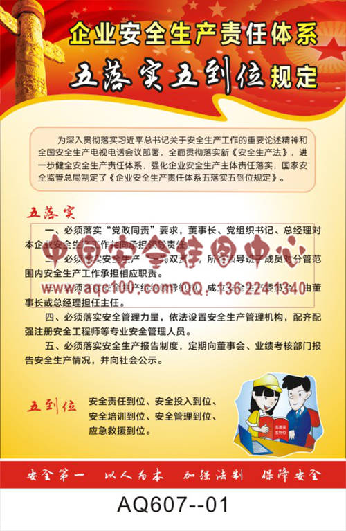 AQ607-01国家安全生产监督管理总局令宣传挂图 企业安全生产责任体系五落实五到位规定