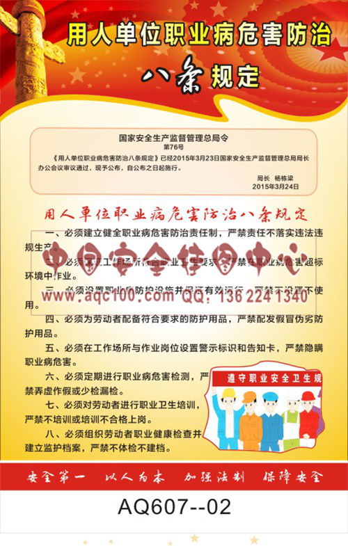 AQ607-02国家安全生产监督管理总局令宣传挂图 用人单位职业病危害防治八条规定