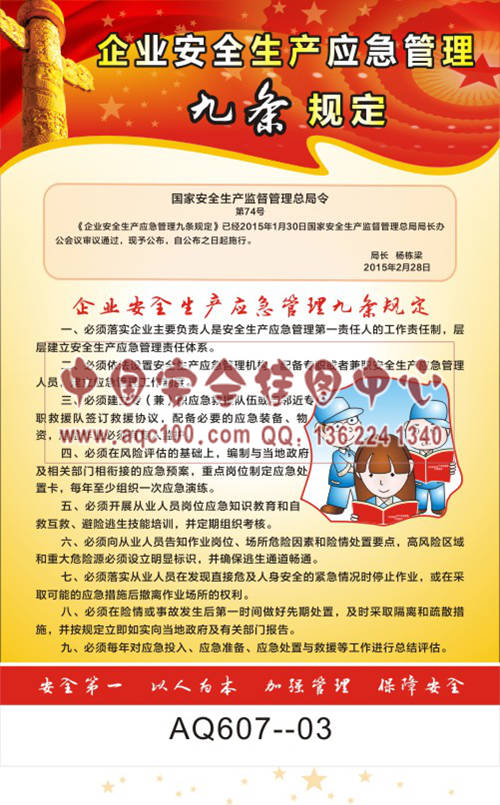 AQ607-03国家安全生产监督管理总局令宣传挂图 企业安全生产应急管理九条规定【安监局3月25出文作废】