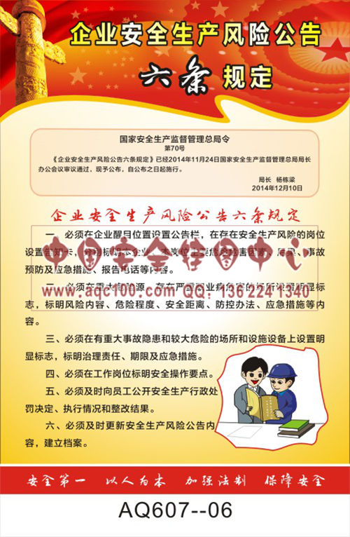 AQ607-06国家安全生产监督管理总局令宣传挂图 企业安全生产风险公告六条规定