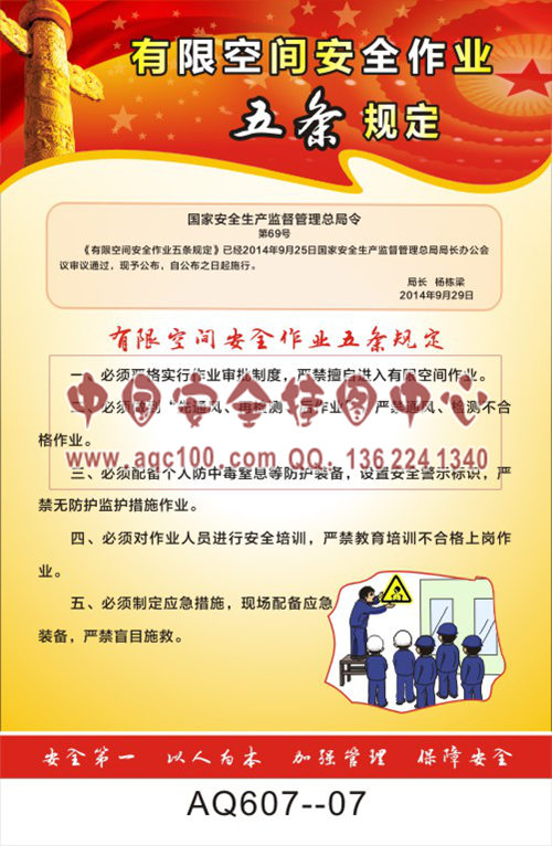 AQ607-07国家安全生产监督管理总局令宣传挂图 有限空间安全作业五条规定