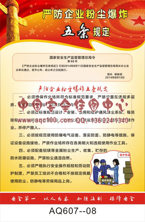 AQ607-08国家安全生产监督管理总局令宣传挂图 严防企业粉尘爆炸五条规定