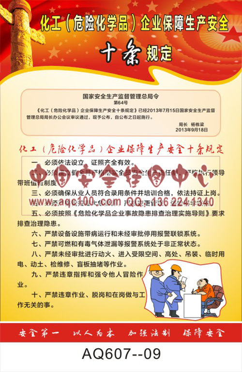 AQ607-09国家安全生产监督管理总局令宣传挂图 化工(危险化学品)企业保障生产安全十条规定
