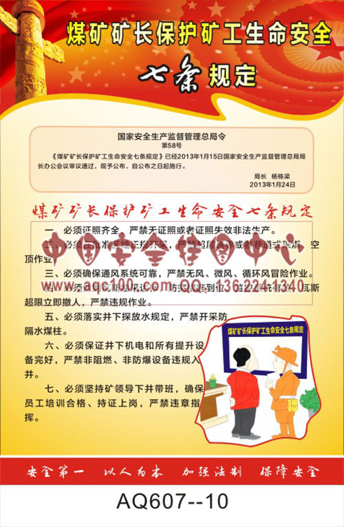 AQ607-10国家安全生产监督管理总局令宣传挂图 煤矿矿长保护矿工生命安全七条规定