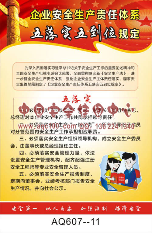 AQ607-11国家安全生产监督管理总局令宣传挂图 企业安全生产责任体系五落实五到位规定之五落实