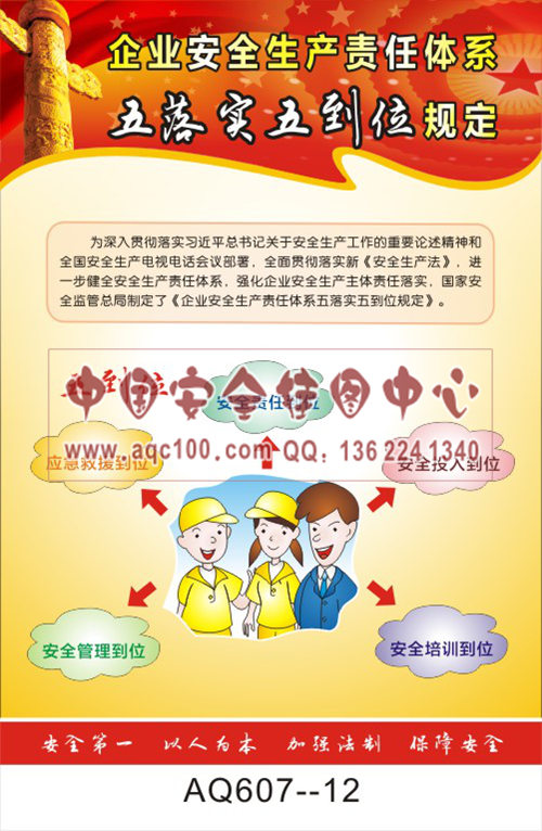AQ607-12国家安全生产监督管理总局令宣传挂图 企业安全生产责任体系五落实五到位规定之五到位