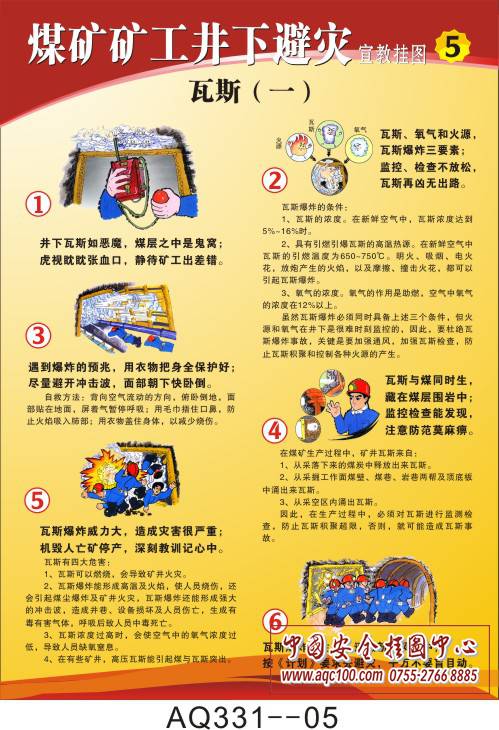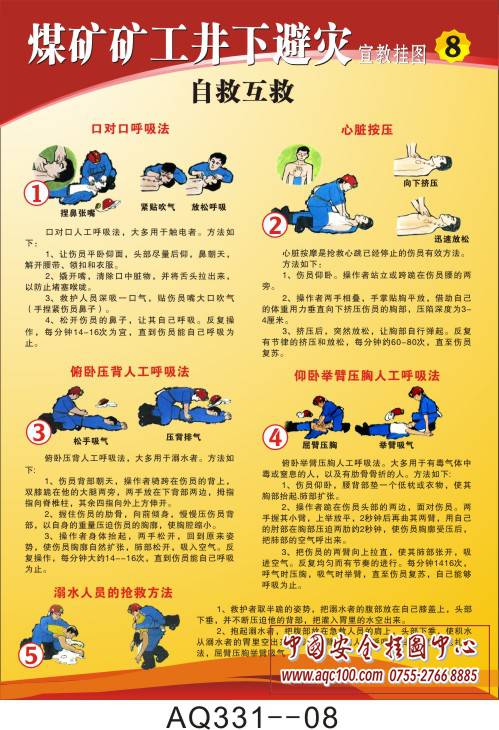 AQ331--煤矿矿工井下避灾宣传挂图-8张
