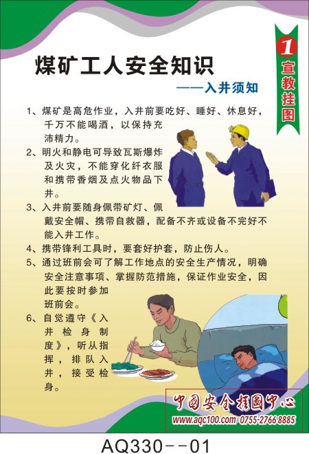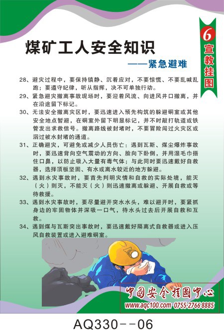 AQ330--煤矿工人安全知识挂图-6张
