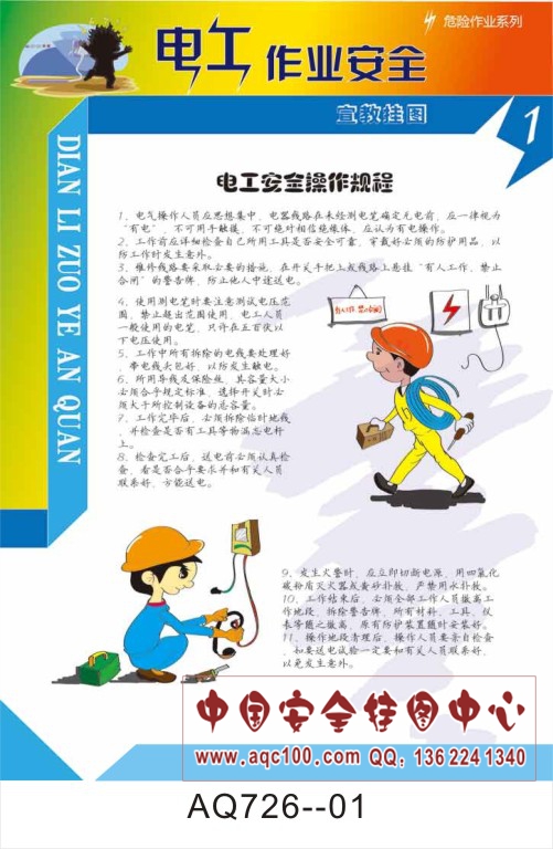 AQ726-01电工作业安全宣传挂图 电工安全操作规程