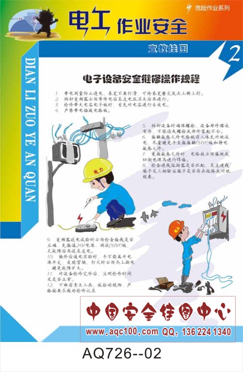 AQ726-02电工作业安全宣传挂图 电子设备安全维修操作规程