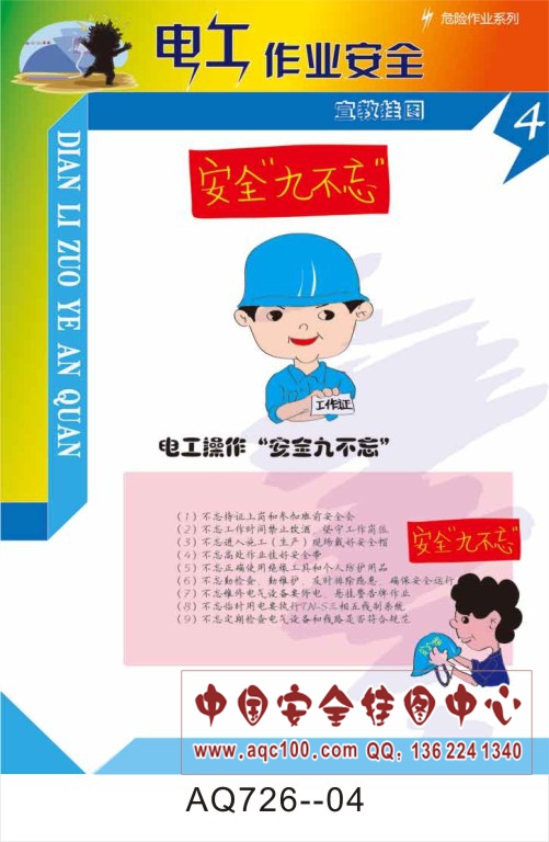 AQ726-04电工作业安全宣传挂图 电工操作安全九不忘