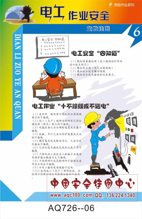 AQ726-06电工作业安全宣传挂图 电工安全四知道