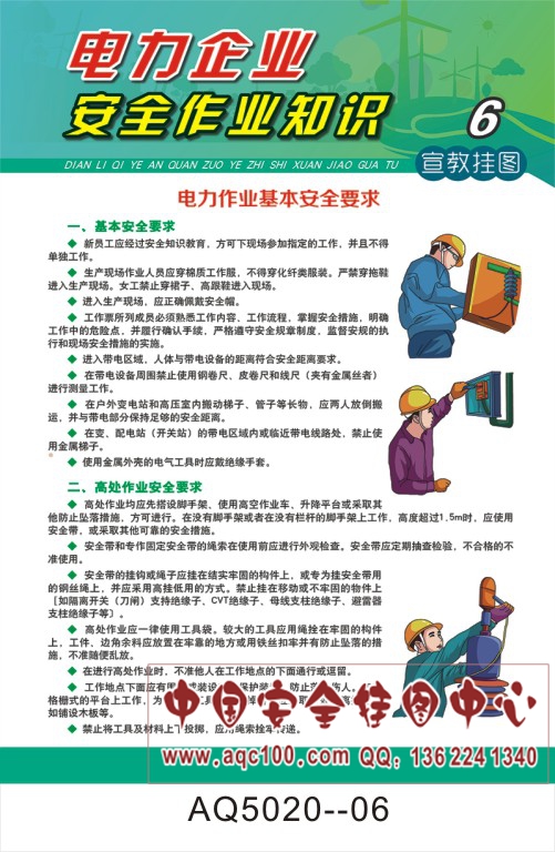 AQ5020--电力企业安全作业知识宣传挂图-6张