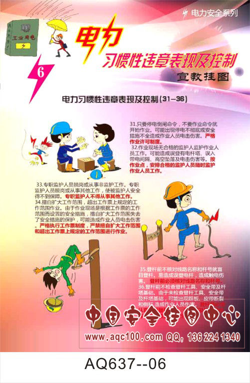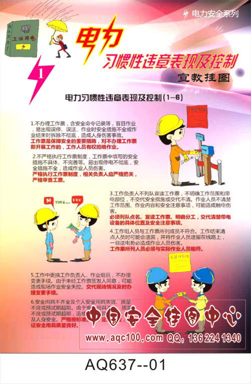 AQ637--电力习惯性违章表现及控制宣传挂图-6张