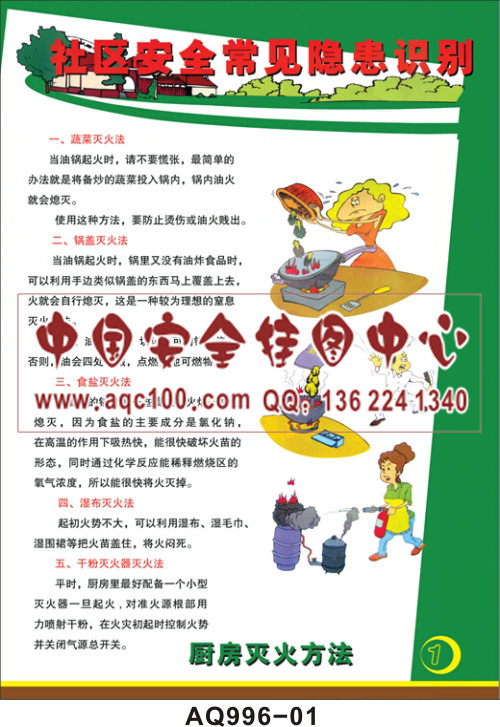 AQ996-01社区安全常见隐患识别挂图-厨房灭火办法