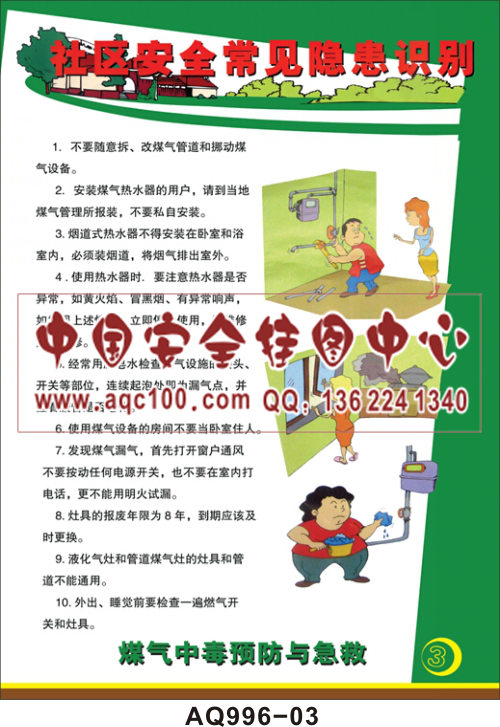 AQ996-03社区安全常见隐患识别挂图-煤气中毒预防与急救