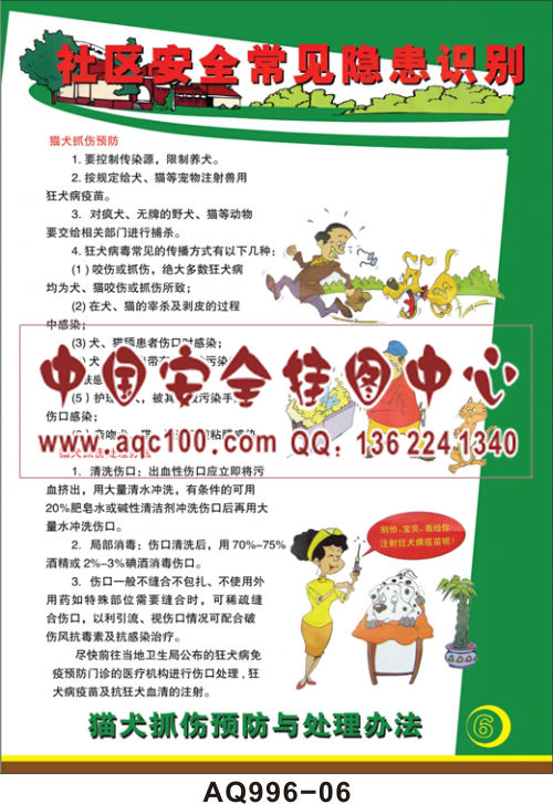 AQ996-06社区安全常见隐患识别挂图-猫犬抓伤预防与处理办法