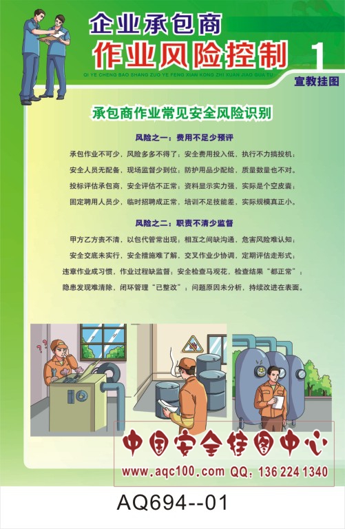 AQ694-01企业承包商作业风险控制宣传挂图 承包商作业常见安全风险识别