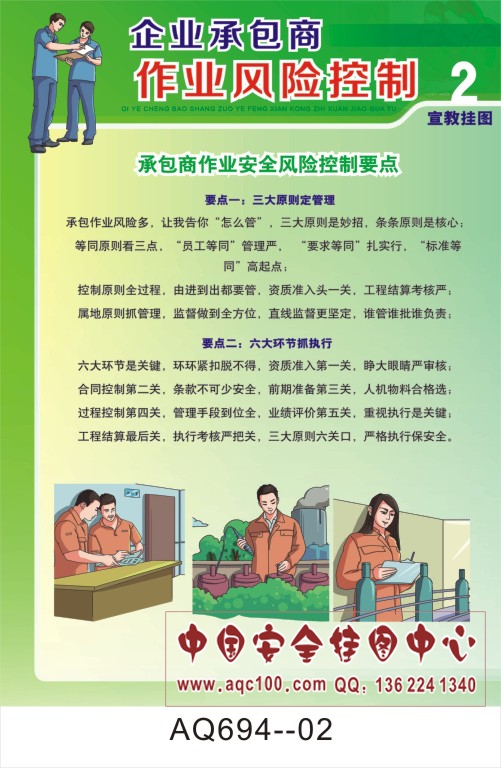 AQ694-02企业承包商作业风险控制宣传挂图 承包商作业常见安全风险控制要点