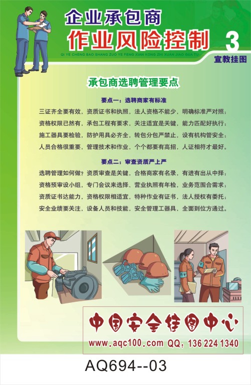 AQ694-03企业承包商作业风险控制宣传挂图 承包商选聘管理要点