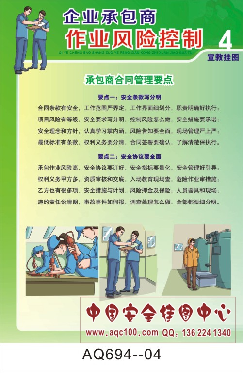 AQ694-04企业承包商作业风险控制宣传挂图 承包商合同管理要点