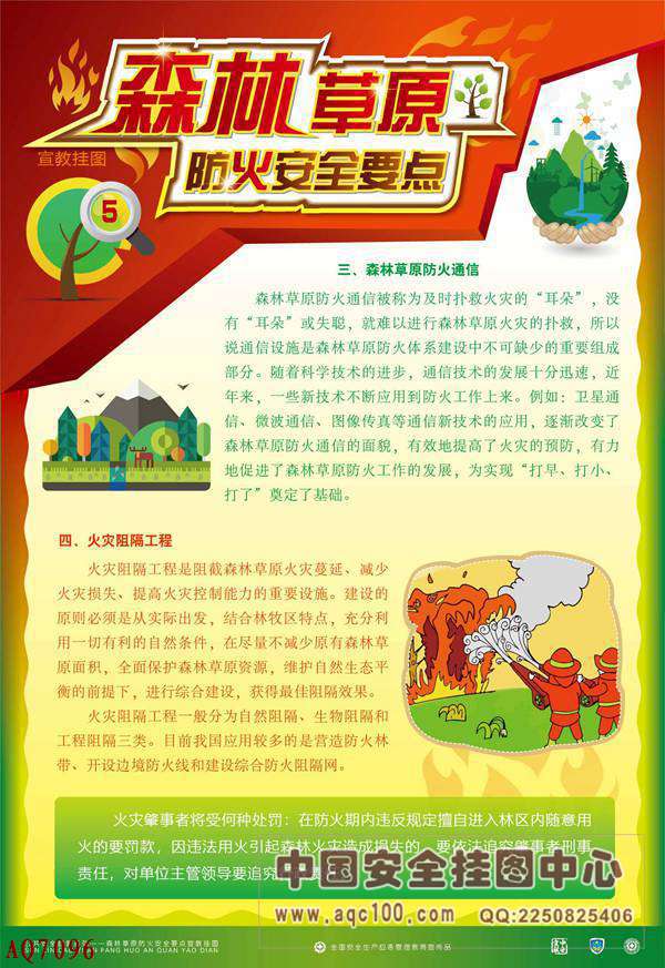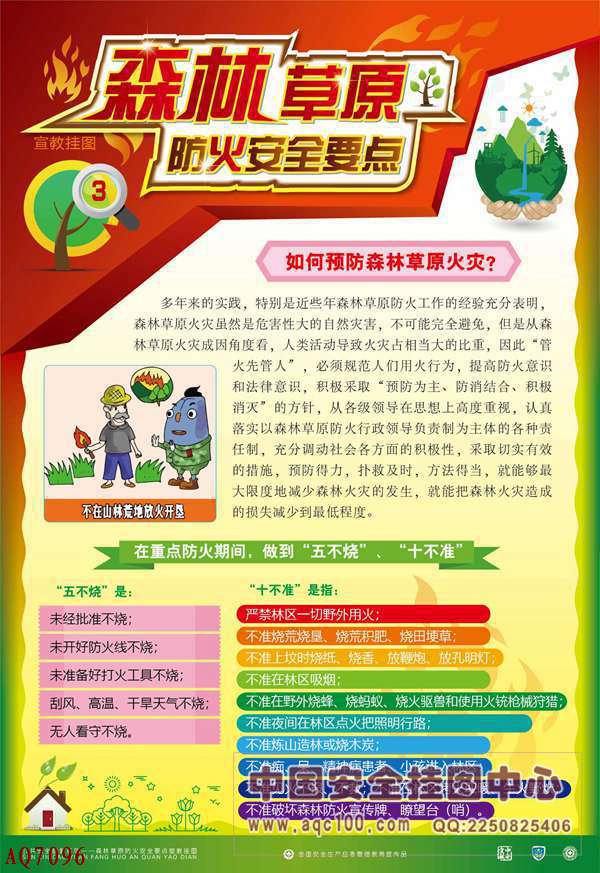 AQ7096-森林草原防火安全要点宣教挂图-6张/套 52*76cm 铜版纸彩色印刷敷亮膜
