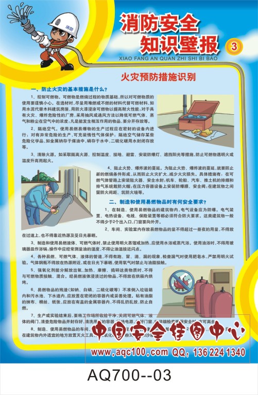 AQ700-03消防安全知识壁报宣传挂图 火灾预防措施识别