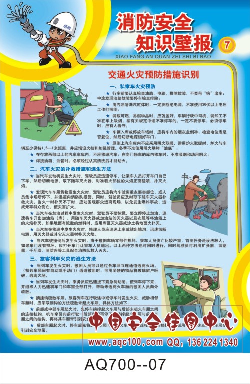AQ700-07消防安全知识壁报宣传挂图 交通火灾预防措施识别