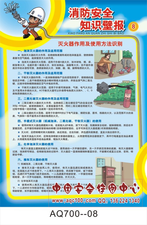 AQ700-08消防安全知识壁报宣传挂图 灭火器作用及使用方法识别