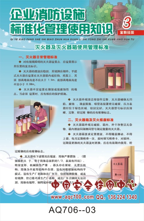 AQ706-03企业消防设施标准化管理使用知识宣传挂图 灭火器及灭火器箱使用管理标准