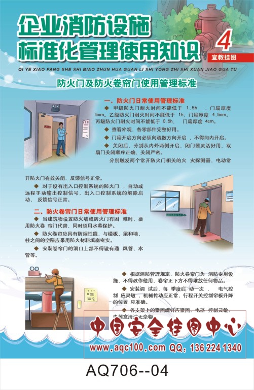 AQ706-04企业消防设施标准化管理使用知识宣传挂图 防火门及防火卷帘门使用管理标准