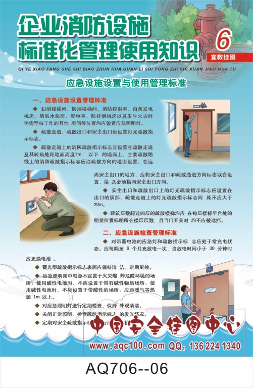 AQ706-06企业消防设施标准化管理使用知识宣传挂图 应急设施设置与使用管理标准