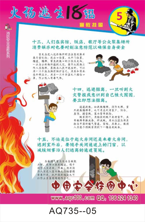 AQ735-05火场逃生18招宣传挂图 公众聚集场所消消防安全