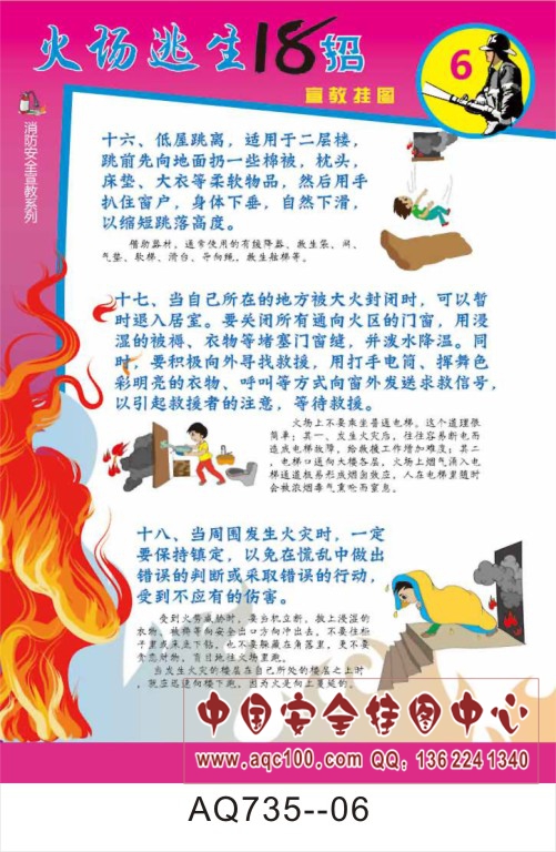 AQ735-06火场逃生18招宣传挂图 高层逃生