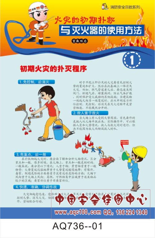AQ736-01火灾的初期扑救与灭火器的使用方法宣传挂图 初期火灾的扑灭程序