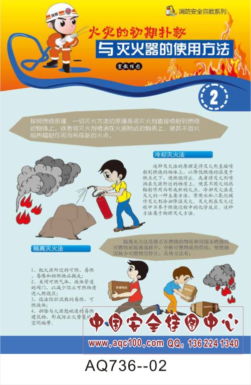 AQ736-02火灾的初期扑救与灭火器的使用方法宣传挂图 冷却灭火法