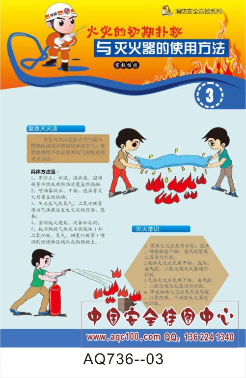 AQ736-03火灾的初期扑救与灭火器的使用方法宣传挂图 窒息灭火法