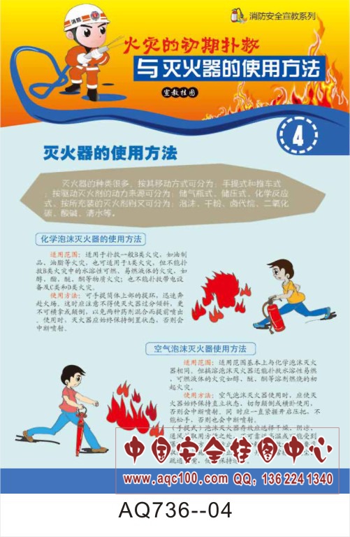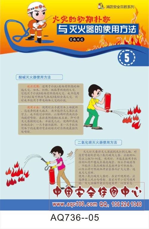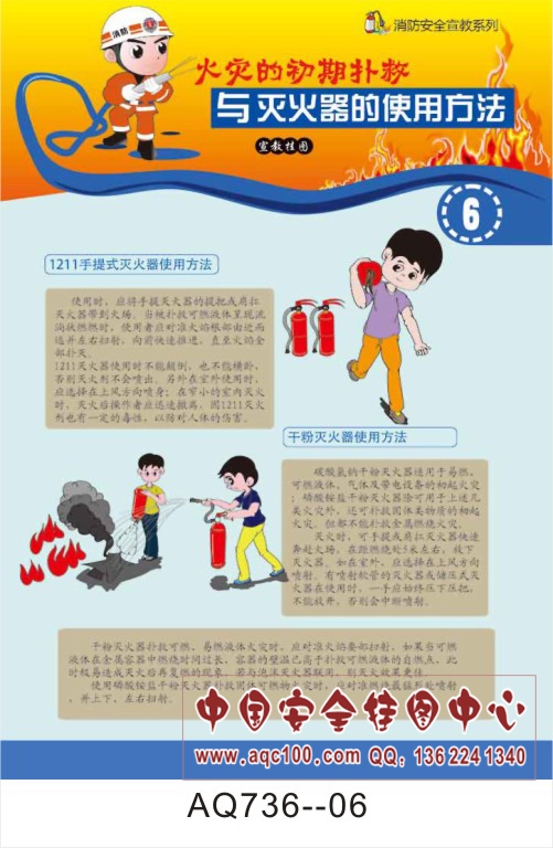 AQ736--火灾的初期扑救与灭火器的使用方法宣传挂图-6张