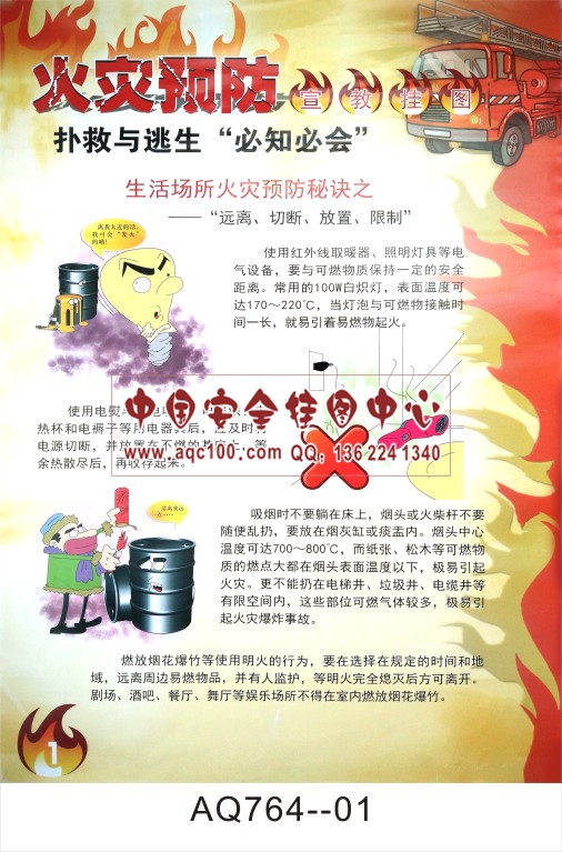 AQ764--火灾预防扑救与逃生必知必会宣教挂图-6张