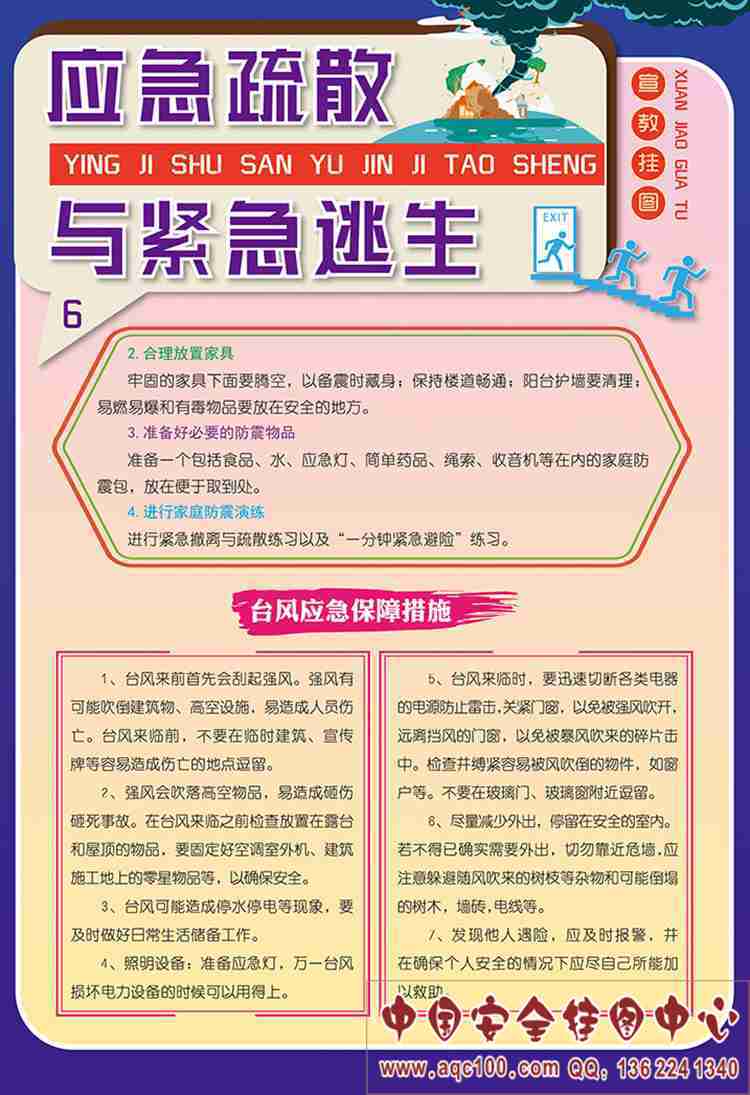 ZAG0106 应急疏散与紧急逃生宣教挂图 覆膜 52*76cm 6张一套 55元/套 PP胶32元/张 展板180元/幅